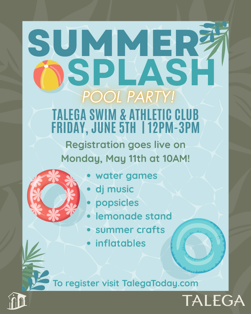 The Talega Swim & Athletic Club office will be closed on Sunday, May 10th in observance of Mother’s Day. For after hours emergencies, please contact (855) 947-2636 …