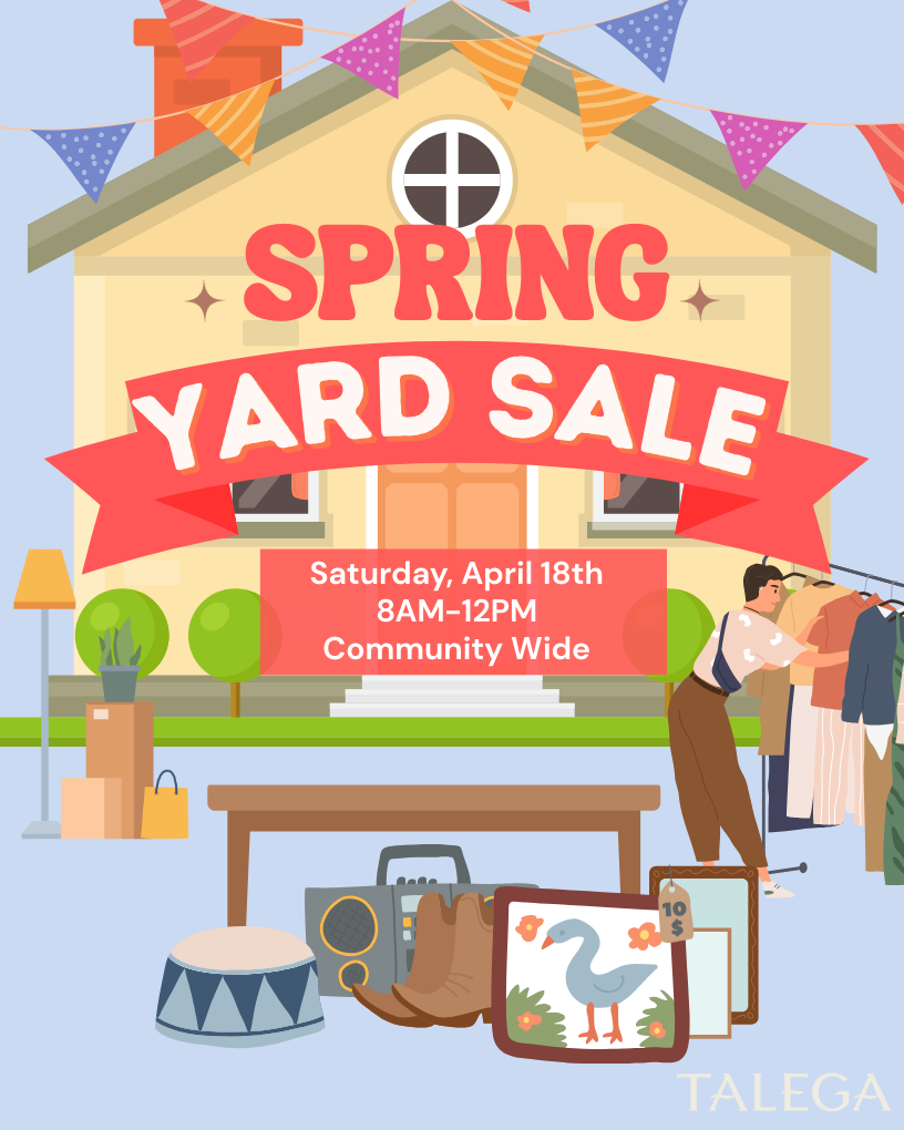 Treasure hunt your way through Talega at our Community-Wide Spring Yard Sale! Join us Saturday, April 18th from 8AM–12PM for deals, finds, and neighborhood browsing.