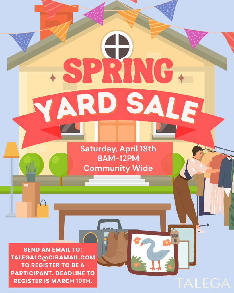 Treasure hunt your way through Talega at our Community-Wide Spring Yard Sale! Join us Saturday, April 18th from 8AM–12PM for…